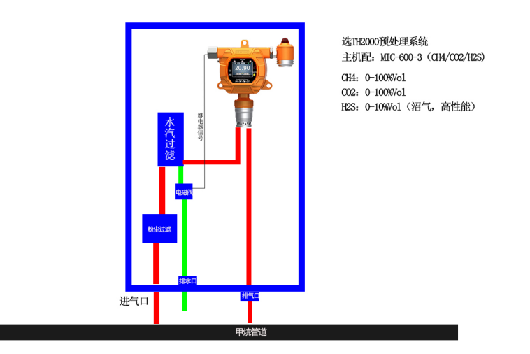 整個(gè)智慧社區(qū)沼氣在線監(jiān)測(cè)系統(tǒng)由供電單元、采樣單元、樣氣處理單元、傳感器檢測(cè)單元、數(shù)據(jù)處理單元、顯示單元和傳輸單位組成。供電單元負(fù)責(zé)為整個(gè)設(shè)備提供電能;采樣單元通過采樣泵將沼氣樣品抽入到傳感器檢測(cè)單元進(jìn)行檢測(cè)和分析;樣氣處理單元負(fù)責(zé)將沼氣樣品中含有的水分和灰塵過濾掉;傳感器檢測(cè)單元負(fù)責(zé)對(duì)沼氣樣品中不同氣味成分的識(shí)別分析;數(shù)據(jù)處理單元通過各傳感器的檢測(cè)數(shù)據(jù)后,利于逸云天獨(dú)有的大數(shù)據(jù)沼氣模型進(jìn)行分析計(jì)算,得出精確的內(nèi)部工程數(shù)據(jù);顯示單元將的內(nèi)部的工程數(shù)據(jù)以淺顯易懂的方式呈現(xiàn)出來;傳輸單位通過有線或無線將最終數(shù)據(jù)遠(yuǎn)程傳輸?shù)江h(huán)保局、控制室和云平臺(tái)等。