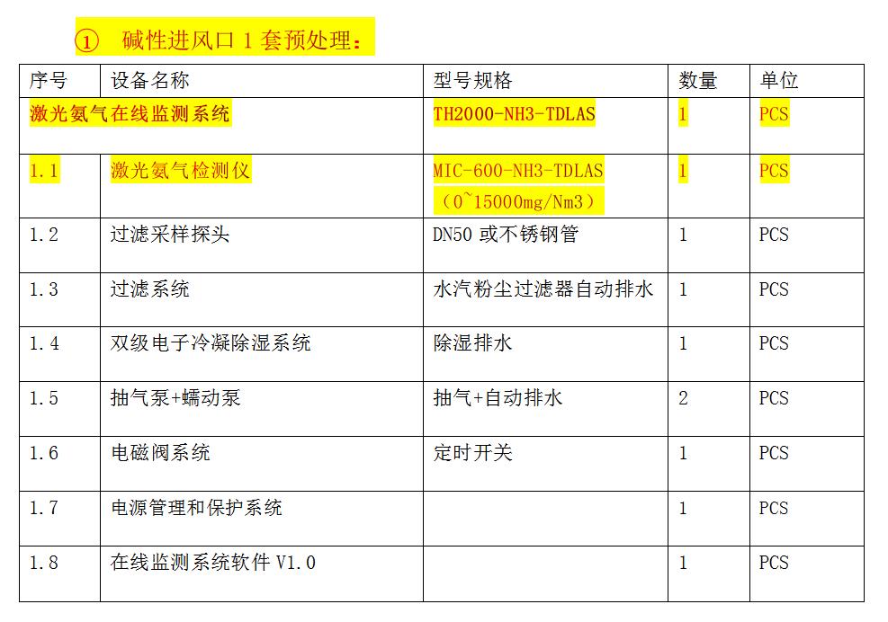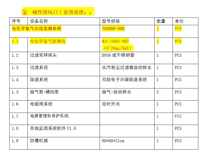 在線監(jiān)測預(yù)處理系統(tǒng) 1套(內(nèi)含對應(yīng)氣體檢測儀1臺)