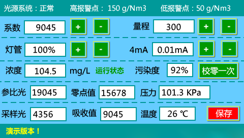 智能補償:內(nèi)置溫度和壓力補償及顯示,帶有光源自動補償功能。